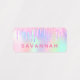 Un arrière - plan tendance couleur arc-en-ciel, irisé avec des couleurs pastel unicorne et arc-en-ciel en rose, violet, or rose, vert menthe. Décoré avec des gouttes de parties scintillant en or rose, rose et violet. Personnalisez et ajoutez un nom et un numéro de téléphone, écrits avec un script de style à la main girly moderne. Lettres de couleur rose.