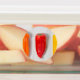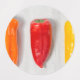 Poivrons de couleur différente placés sur une planche à découper grise Image © Angelika Stern