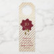 Élégant cintre de bouteille de mariage fait dans un motif doré rayé avec des graphiques d'un sceau de cire rouge avec monogramme, au sommet. Personnalisez le texte personnalisé en fonction de vos besoins mariages. Faites de bonnes étiquettes de vin pour vos clients mariages.