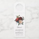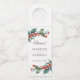 Un joli porte-étiquette de bouteille floral conçu pour les mariages, les fêtes de fiançailles, les dîners de répétition et autres célébrations pour les mariés et les mariés pendant la saison hivernale, ce design présente des brins aquarellés de houx dans des nuances de rouge, de vert et de sarcelle aqua. Personnalisez avec les noms des mariés et la date du mariage. C'est un excellent choix pour décorer des bouteilles de vin ou d'autres boissons et célébrer le couple heureux.