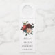 Un joli porte-étiquette floral conçu pour les mariages, les fêtes de fiançailles, les dîners de répétition et autres célébrations pour la mariée et le marié. Ce design présente un bouquet de fleurs luxueuses aux tons de bijoux en rouge, bordeaux, bleu et rose avec de la verdure tombante et des brins de chardon. Personnalisez avec les noms des mariés et la date du mariage. C'est un excellent choix pour décorer des bouteilles de vin ou d'autres boissons et célébrer le couple heureux.