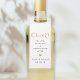 Étiquettes personnalisées pour bouteille de vin en cadeau de mariage avec une typographie élégante et un fond de bokeh en forme de cœur doré.