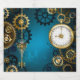 Arrière - plan turquoise, texturé, steampunk avec des engrenages en laiton et or, une clé en argent et l'horloge. Style Steampunk.