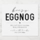 Large homemade boozy eggnog labels include some basic instructions and a personalized gift message in a clean, modern design.