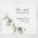 Customisez notre mariage moderne de feuillage eucalyptus boissons modèle Étiquette pour votre mariage avec tous vos invités. Doté d'un design minimaliste et d'une aquarelle et d'un feuillage verdoyant. Parfait pour d'autres événements spéciaux comme les invitations de répétition mariages, réceptions de mariage et douches, et bien plus encore.