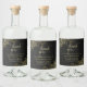 Ces étiquettes de bouteilles d'alcool sont parfaits pour remercier les invités spéciaux ou les membres de votre fête de mariage. Elles présentent un design élégant avec des fraises fantaisistes en or ou en filigree dans les coins, de la calligraphie en dentelle et un arrière - plan noir. Le texte dit : merci de célébrer avec nous ! Il y a de la place pour les noms du couple, la date du mariage et le contenu de la bouteille. Parfait pour un sac à bagages mariage !
