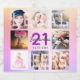 Un étiquette de bouteille pour une fête de 21ème anniversaire, célébrant sa vie avec un collage de 8 de vos photos. Personnalisez et ajoutez un nom, 21 ans et une date. Date de naissance ou date de la fête. Lettres violettes et gris foncé. Elégante et tendance arrière - plan couleur arc-en-ciel en or violet, violet, rose et rose. Texte : Légal et encouragements écrits sur les photos comme filigranes.
