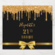 Élégant, classique, glamour et étiquette d'anniversaire de style girly. Faux ruban or et arc de couleur or avec fausse parties scintillant d'or goutte à goutte. Arrière - plan noir. Avec le texte : 21ème anniversaire. Modèle pour un nom écrit avec un script de style moderne écrit à la main.