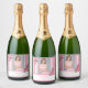 Étiquettes Pour Bouteilles De Vin Mousseux 21e anniversaire rose blanc rayures photo florale
