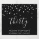 Aidez-la à fêter son 30e anniversaire dans le style avec ce design simple mais élégant, avec des confettis triangulaires en faux argent sifting down sur le mot "trente" en gris clair police d'écriture sur un arrière - plan noir. Personnalisez-le avec le nom de l'honoré en gris clair sans serif, ainsi que l'occasion et la date ci-dessous en gris clair plus petit.
