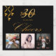 Un étiquette de bouteille pour une soirée glamour de 30ème anniversaire. Personnalisez et ajoutez 3 de vos propres photos, un nom, 30 ans et une date. Date de naissance ou date de la fête. Lettres de couleur dorée. Le mot : Bravo, en faux or écrit avec un script de style à la main tendance. Elégante, classique, couleur arrière - plan noire chic, décorée avec des serpentins de soirée en faux or.