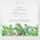 Décor de table parfait pour une fête d'anniversaire de décembre. Le saint vert est la fleur de naissance pour ce mois-là. Il forme une jolie bordure de fond d'aquarelle sur ce étiquette de vin personnalisé rustique. Le nom, l'âge et la date de naissance de l'invité d'honneur sont placés au-dessus de celui-ci à l'aide d'élégantes calligraphies et typographies. Tout le texte est modifiable.