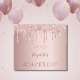 Une bouteille de vin pétillante étiquette pour une fête de 40e anniversaire avec les filles. Un faux rose à l'aspect métallique à l'arrière - plan avec un élégant faux rose parties scintillant doré gouttes, look goutte à goutte de peinture. Le texte : Le nom est écrit en or rose foncé avec un grand script de style à la main moderne. Modèle pour le nom, âge 40 et une date.