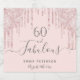 Étiquette de vin de 60ème anniversaire simple et élégant. Un or rose féminin, arrière - plan rose vif décoré de gouttes de parties scintillant en or rose, look goutte à goutte de peinture. Avec le texte : 60 et fabuleux. Personnalisez et ajoutez un nom et une date. Date de naissance ou date de la fête. Texte gris. Le mot Fabulous est écrit avec un script de style à la main moderne avec des swashes.