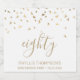 Aidez-la à fêter son 80e anniversaire dans le style avec ce design simple mais élégant, avec des faux feuilles d'or triangulaire confetti sifting down sur le mot "quatre-vingts" en écriture manuscrite en or sur un arrière - plan blanc. Personnalisez-le avec le nom de l'honneur en or sans serif, ainsi que l'occasion et la date ci-dessous en or plus petit type.