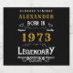 anniversaire personnalisé né en 1973 Ajouter votre nom anniversaire étiquettes bouteille de vin mousseux. Modifiez le nom et l'année avec le modèle fourni. Une merveilleuse idée d'anniversaire noir sur mesure. Plus de cadeaux et de fournitures de fête disponibles avec le design "légendaire" dans le magasin.