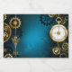 Arrière - plan turquoise, texturé, steampunk avec des engrenages en laiton et or, une clé en argent et l'horloge. Style Steampunk.