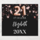 Un arrière - plan noir classique décoré d'étoiles dorées roses. Personnalisez et ajoutez une date, un nom et une année de naissance. Numéro d'âge écrit avec une police de style ballon.