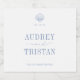 CAPE COD Bleu côtier, étiquette mariage bouteille de boisson. Caractéristiques, typographie bleu clair et illustration du coquillage de Saint-Jacques.