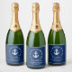 Dernière voile avant le Voile Nautique Ancres Coeurs Marine Blue Bachelorette Party vin mousseux Bouteille Étiquette