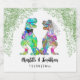 Dégustez vos invités avec ces étiquettes de vin mariages à thème de dinosaures colorés et mariés dinosaures mariés et mariés dinosaures. Magnifique mariée et mariée en couleur rose violet bleu vert jaune et feuillage de la jungle verte avec facile à personnaliser les noms des mariés et des mariés et la date mariage dans le script moderne de typographie lunaire. Dino original unique oeuvre de l'artiste Catherine Sweetman