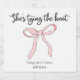 Ajoutez une touche finale sucrée à votre fête de fiançailles avec nos étiquettes de vin de mariage "Elle Noue le Nœud" Coquette Rose! Conçues pour compléter parfaitement nos invitations coordonnées, ces autocollants présentent un délicat nœud rose, créant une ambiance féminine et fantaisiste. C’est le détail parfait pour rassembler le thème de votre fête.