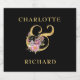 Noms de couples mariages simples mais élégants, avec une amande dorée et un arrangement floral rose.