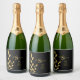 Étiquettes Pour Bouteilles De Vin Mousseux Elégante feuille d'or noir moderne Mariage Monogra