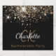 Pour un enterrement de vie de jeune fille élégant. Un fond noir chic avec des taches de paillettes dorées fausses. Personnalisez et ajoutez un nom et les initiales du monogramme. Le nom est écrit en couleur or avec un style de lettre manuscrit moderne. Lettres blanches et dorées.