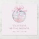Étiquette de vin pétillant de douche nuptiale avec une boule disco brillante avec un arc rose clair et des polices élégantes dans lesquelles toutes vos informations personnalisées sont écrites. Vous pouvez trouver les produits correspondants de cette collection dans notre magasin.