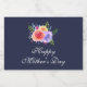 Une bouteille de vin pétillante étiquette avec les mots : Joyeuse fête des mères. Texte modifiable / modifiable. Conçu avec un joli bouquet de roses aquarelles avec des sprigs, des feuilles et des branches, le tout dans un agencement fleuri coloré. Arrière - plan bleu marine.