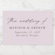 Les étiquettes de vin pétillant mariage moderne disposent de la phrase "le mariage de" affichée dans un élégant script de calligraphie noir sur un arrière - plan lavande violet clair. Personnalisez les étiquettes de vin mousseux lavande avec vos noms, date mariage et emplacement mariage. Les étiquettes de vin pétillant mariage sont parfaits pour les réceptions de mariage, les dîners de répétition et les fêtes de fiançailles.