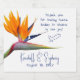 Étiquettes de bouteille de fleurs d'oiseau de paradis. Fleurs exotiques orange pour un mariage tropical/hawaïen imprimées sur des étiquettes blanches avec les noms du couple et la date du mariage. Ajoutez également un court message de "merci" avec un petit cœur dessiné à la main sous le texte. Ce design convient aux étiquettes plus grandes, telles que les bouteilles de bière, de vin et de vin mousseux. Ne laissez aucune formulation s'approcher des bords.