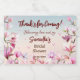 Célébrez la future mariée avec ces charmantes étiquettes personnalisées pour mini bouteilles de vin pétillant, parfaites pour ajouter une touche d'élégance à vos cadeaux de fête de mariage. Avec un design floral rose doux orné de délicates fleurs de magnolia et de papillons, l'étiquette porte l'inscription "Merci d'être venu ! En vous remerciant pour votre amour et votre joie" ainsi que le nom de la mariée et la date de l'événement personnalisables.