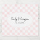 Create personalized labels for champagne bottles and more. This paper label is ready to be personalized with the names of the bride and groom and their wedding date. The black text is set inside of a white oval-shaped frame and set against a pink and white checkerboard pattern. Pastel pink painted squares are alternated with plain white squares to form this check pattern.