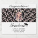 Rococo Pink Black Graduate Photo Graduation vin mousseux Étiquette. Design élégant de graduation avec rococo rose et noir ornement motif et une photo personnalisée dans un cadre ovale.