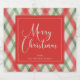 Motif en plaid traditionnel de Noël peint en rouge, vert et beige, étiquettes de bouteille. Caractéristiques de conception, script Joyeux Noël et ligne de texte modèle pour votre nom.