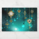 Or, clés antiques avec engrenages et cadrans accrochés sur chaînes dorées sur arrière - plan vert lumineux.