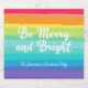 Belle bouteille de champagne de Noël arc-en-ciel étiquette dans des couleurs assez audacieuses qui dit Be Merry and Bright. Cadeaux de vacances à thème gay pride pour une famille LGBTQ.