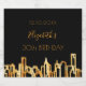 Pour une soirée d'anniversaire élégante de 30e (ou de n'importe quel âge) pour lui, les gars ou les femmes. Un élégant arrière - plan noir avec une abstraite silhouette de ville en faux or comme décor. Le texte : Le nom est écrit avec un script de style en lettres d'or moderne. Personnalisez et ajoutez le nom, l'âge 30 et une date.