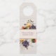Élégant tag mariage de automne à thème bouteille fait dans une texture d'ivoire arrière - plan et jolies fleurs violettes et jaunes avec gazon de pampes, autour de la zone de texte. Personnalisez le texte pour lire ce que vous voulez. Idéal pour vos réceptions de mariage, faveurs pour vos invités et chambre d'hôtel vin de bienvenue pour les invités hors de la ville.