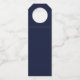 Ces étiquettes de suspension de bouteille de mariage élégantes et tendance présentent une belle couronne avec des fleurs aquarelles de couleur nautique sur un fond bleu foncé et marine. Les fleurs d'hortensia, de pivoine et d'anémone apparaissent dans des nuances de bleu marine, de bleu clair et de rose blush avec des feuilles vertes et beige neutre, et votre monogramme ou initiale au centre.