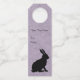 Cette étiquette suspendue pour bouteille en papier est de couleur violet clair avec le profil d'un lapin assis aux oreilles hautes en silhouette noire. Personnalisez votre texte sur le devant avec les modèles.