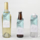 Un arrière - plan abstrait qui évoque le marbre dans les tons turquoises, veiné d'argent scintillant, est la toile de fond de textes élégants et d'aménagements design modernes dans les pièces de cette belle suite mariage. La marque de bouteille mariage montrée ici contient le plus ci-dessus "Amour & Merci" et un modèle pour ajouter le nom de la mariée et du marié et la date du mariage. Recherchez ID644 pour voir toutes les pièces de coordination de cet ensemble.