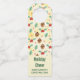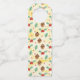 Balises de bouteille avec un motif de Noël mignon avec des cônes de pin et saint sur un arrière - plan d'aquarelle jaune avec des petits cercles blancs éparpillés autour.