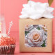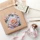 Belle rose rose rose et gouttes de pluie étiquette avec texte modifiable.