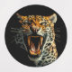 Fierce Puissant Leopard Roaring portrait d'attaque gros avec de longs crocs. Illustration vectorielle originale isolée sur blanc Copyright BluedarkArt TheChameleonArt.