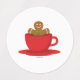 Un homme en pain d'épices se reposant dans une tasse rouge chocolat chaud. Idéal pour les accros du chocolat chaud, du café et du thé.