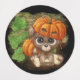 Étiquettes Un mignon chiot dans un casquette citrouille