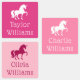 Nommez les étiquettes avec une licorne et votre nom sur différentes nuances de rose.